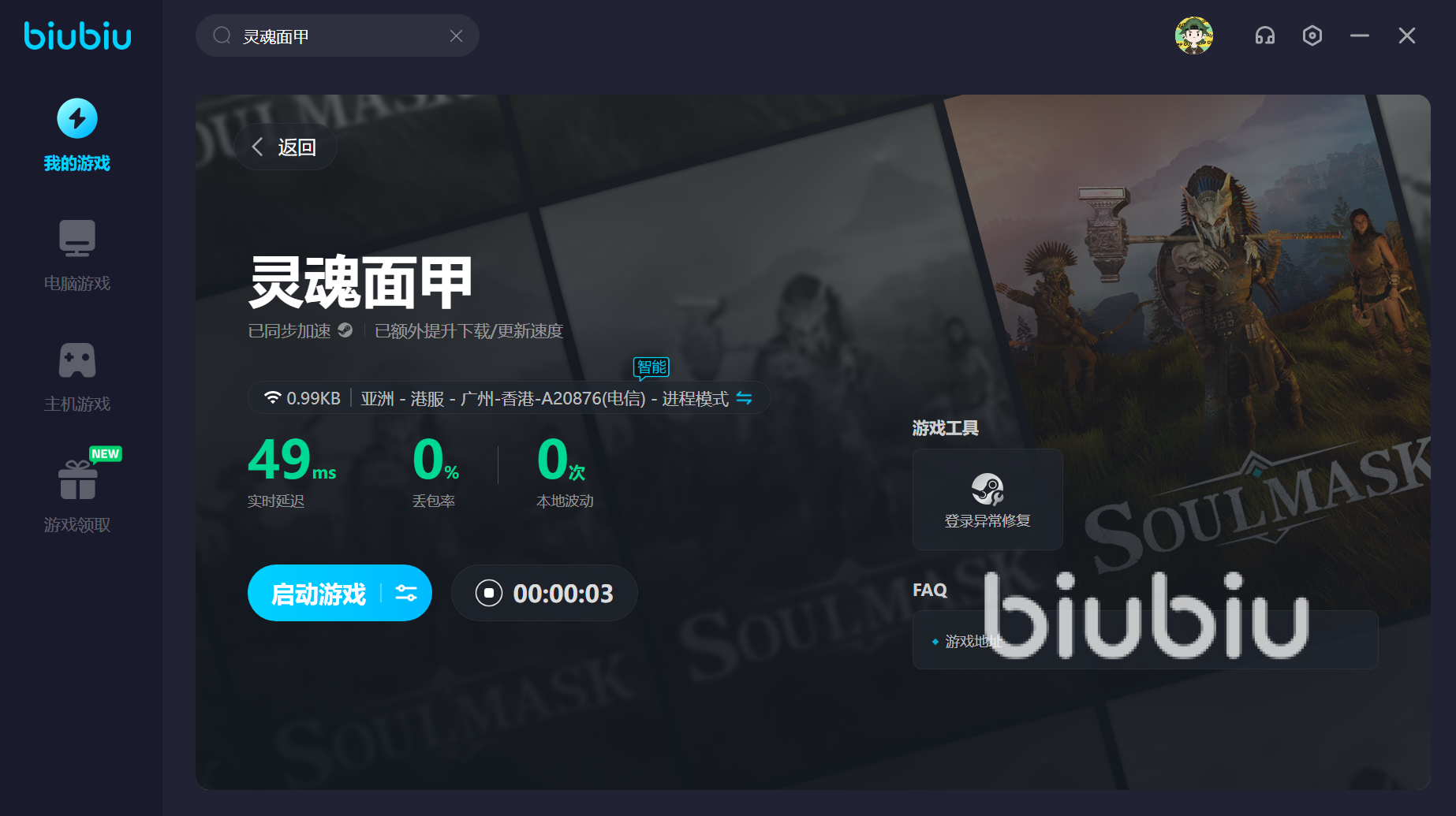 玩家是可以在靈魂面甲中游戲聯(lián)機的,聯(lián)機能提高資源的建筑效率,還可以結交到很多的好朋友,但是國內渠道的人數(shù)很多,所以大部分玩家都去外服進行游玩了,但是外服的網(wǎng)絡很差,高延遲幾乎是常駐的,那biubiu加速器能覆蓋絕大多數(shù)的游戲渠道,讓處于外服也能獲得好的體驗!