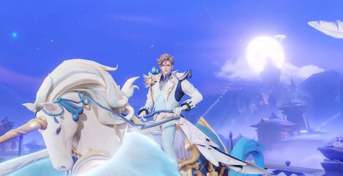 此次520皮膚的男主之一,小伙伴們可以看到這個效果是非常不錯的,白色與金色的點綴,讓皮膚整體呈現(xiàn)出一種氣質。而且還是騎著白馬飛奔而來,相信他就是大喬心目中的白馬王子,這個皮膚跟之前爆料的一模一樣,不得不說質量這款相當不錯。