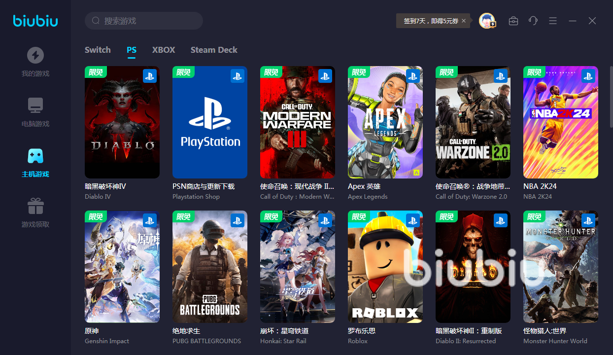 在pc端成為會員之后,不僅可以加速各種pc游戲,也可以直接連接switch、ps 、XBox等主機平臺,去對那些主機游戲進行加速,也能夠有同樣的優(yōu)化效果。大家在biubiu的界面中就直接可以看到有各種各樣的主機游戲,連接之后就能使用,還可以使用同一個賬號去登錄手機端,實現(xiàn)免廣告加速手游。有了這樣的效果之后,會員性價比將會進一步提升,而且很多游戲也都是在多平臺上線,這樣就沒有了平臺限制,選擇自己最喜歡的平臺和操作方式去體驗。