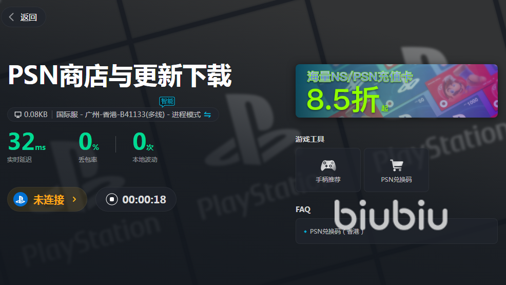 biubiu專業(yè)的手游加速技術(shù)也是它的亮點(diǎn)之一,一鍵就能解決手游網(wǎng)絡(luò)卡頓、延遲、掉線等問題,為玩家們的游戲上分之旅保駕護(hù)航。此外它還支持近3000款PS端游戲的加速,無論是人氣火爆的頭部游戲,還是小眾游戲,都能得到很好的支持。
