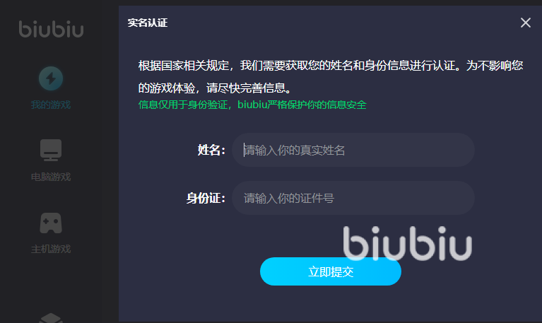 1.biubiu加速器使用簡(jiǎn)單,登錄后的實(shí)名認(rèn)證的過程也非常輕松以及流暢,玩家們輸入信息就可以了,通過速度極快。