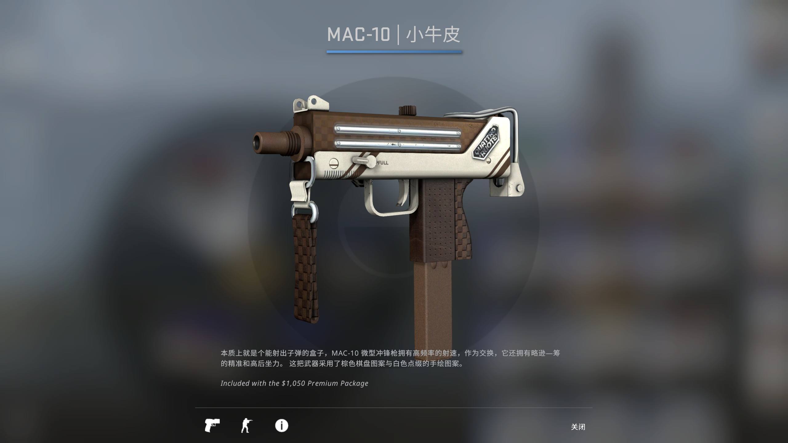 MAC-10沖鋒槍也被稱為M-10,因為設定的使用對象不同,該槍的設計并不是按照常規(guī)裝備的思路進行。這把槍注重的是爆發(fā)力,每分鐘射速能夠達到1100發(fā),能夠短時間內掃射多個近距離的目標,有全自動開火和半自動開火兩種方式,由于其持槍使用的是手槍式的五把,所以很多人也將其稱之為沖鋒手槍。