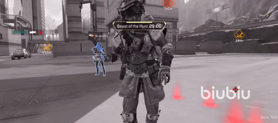 然后是尋血獵犬的終極技能“荒野獵人”,荒野獵人在激活后,尋血獵犬的視野會變?yōu)楹诎咨?,并獲得紅外感知,視野內(nèi)的敵人會被紅色高亮曝光。同時(shí),尋血獵犬的移動速度會大幅度提升,“偵查”技能的冷卻也會降低,是目前apex手游最強(qiáng)力的BUFF技能。