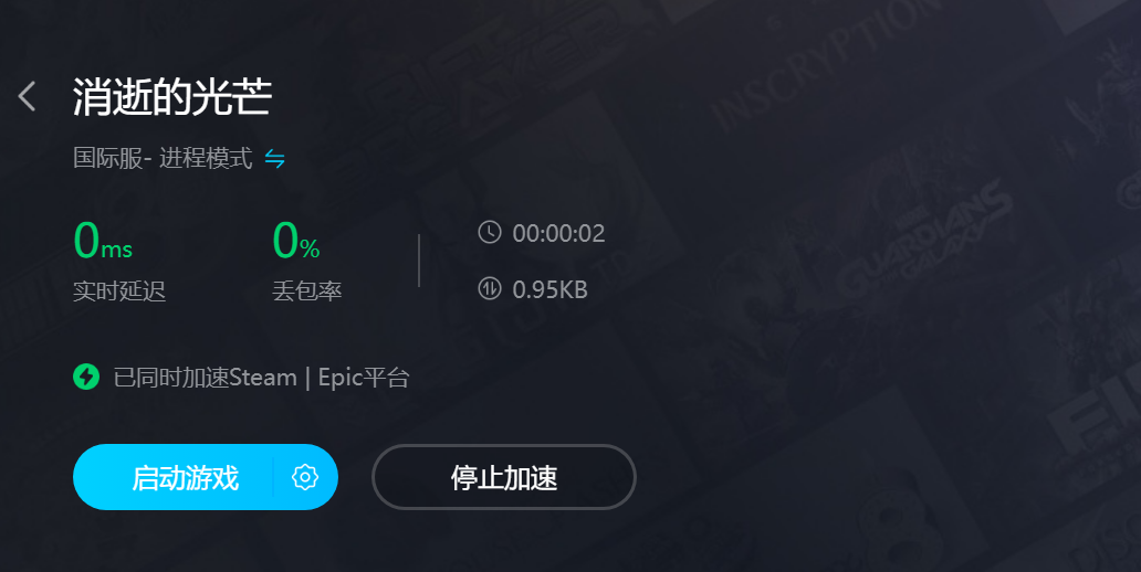 biubiu加速器可以點擊綠色按鈕進行下載,新用戶需要進行注冊,并完成實名認證,注冊完成以后,找到消逝的光芒這款游戲,點擊界面中的加速按鍵,加載完成后就可以看到這款游戲的延遲會比之前小很多,游戲的體驗感也會更加順暢和絲滑,游戲不玩后,按界面中的停止加速按鍵,游戲就會停下來,同時,小伙伴們可以看到加速器為游戲加速的時間,非常的方便。