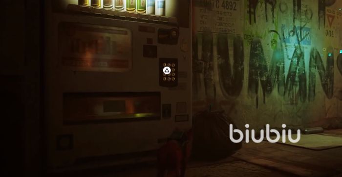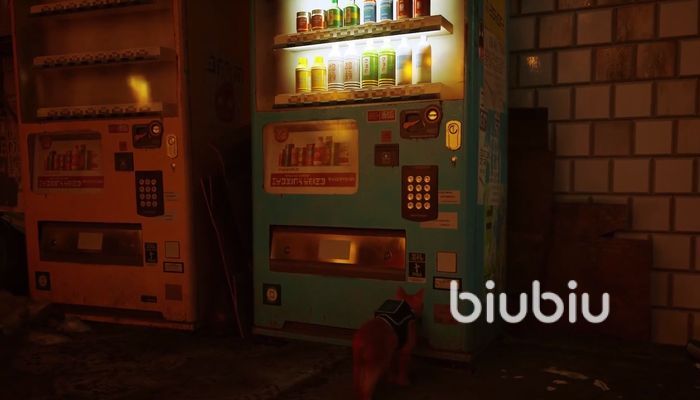 然后就可以看到左側(cè)就有第二個(gè)自動(dòng)販賣機(jī)了,就是上圖所示的位置??偟膩碚f其實(shí)第二個(gè)的難度也不高,大家在探索地圖的時(shí)候應(yīng)該也是發(fā)現(xiàn)了,沒看到的玩家們估計(jì)是貓貓的視角太低了,沒有注意到這個(gè)細(xì)節(jié)。我們拿到這個(gè)能量飲料之后,就可以去找第三個(gè)了。