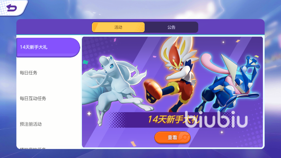 1、其他活動(dòng):目前游戲中的活動(dòng)任務(wù)比較多,比如每日任務(wù)、每日互動(dòng)任務(wù)、捷拉奧拉任務(wù)、持有物強(qiáng)化支援任務(wù)、超級(jí)持有物強(qiáng)化任務(wù)、滿級(jí)體驗(yàn)活動(dòng)研究所任務(wù)。這些任務(wù)都可以在活動(dòng)中進(jìn)行確認(rèn),游戲前期會(huì)通過(guò)活動(dòng)贈(zèng)送大量的精靈,大家最好還是優(yōu)先完成并領(lǐng)取的好。