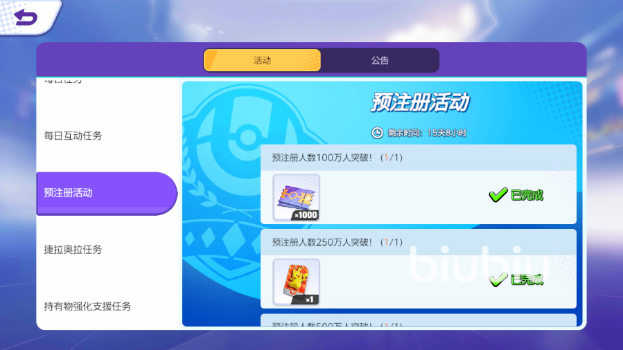 以上就是小編為大家?guī)?lái)的寶可夢(mèng)大集結(jié)預(yù)注冊(cè)獎(jiǎng)勵(lì)怎么領(lǐng)攻略,祝大家游戲愉快。