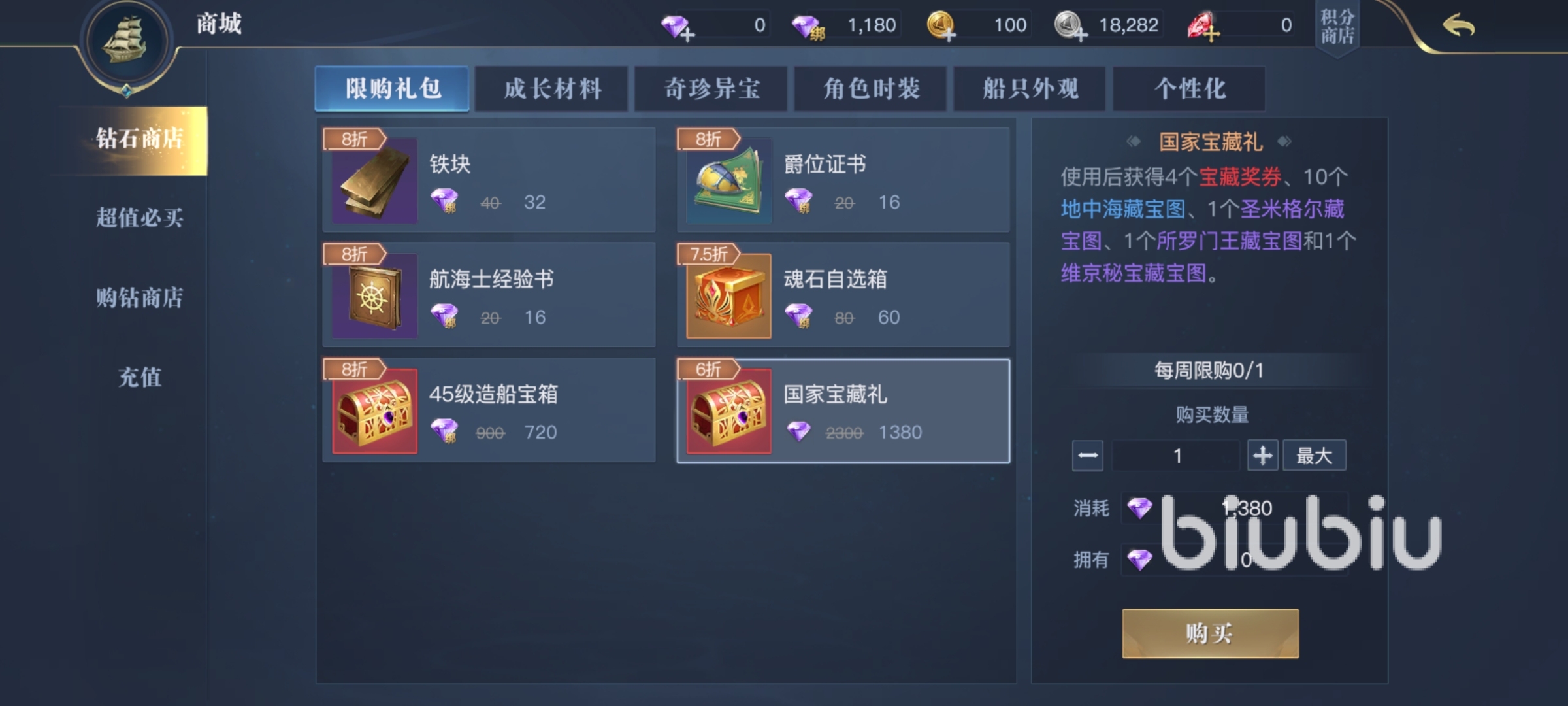 目前獲取藏寶圖的途徑主要有皇家競(jìng)答、寶藏禮包和地圖探索這三個(gè)?;始腋?jìng)達(dá)屬于休閑活動(dòng),每天下午19:35就會(huì)開啟,回答一些常識(shí)性的問題就能獲得地中海藏寶圖、高級(jí)航海士碎片,以及商會(huì)貢獻(xiàn)度等獎(jiǎng)勵(lì)。寶藏禮包需要在鉆石商店中花費(fèi)鉆石購買,打開之后可以獲得大量藏寶圖,除了有低級(jí)的地中海藏寶圖外,還有高級(jí)的所羅門藏寶圖,圣米格爾藏寶圖等。
