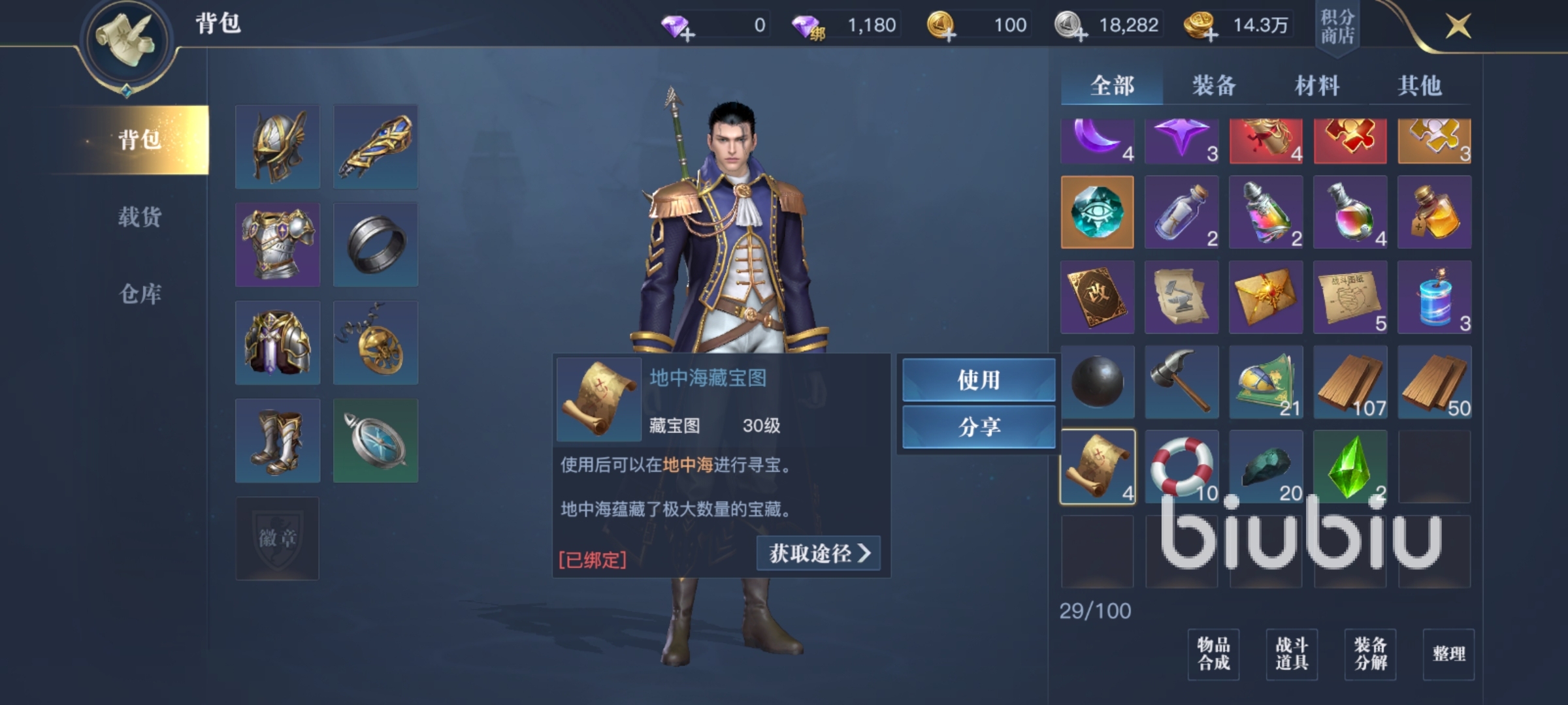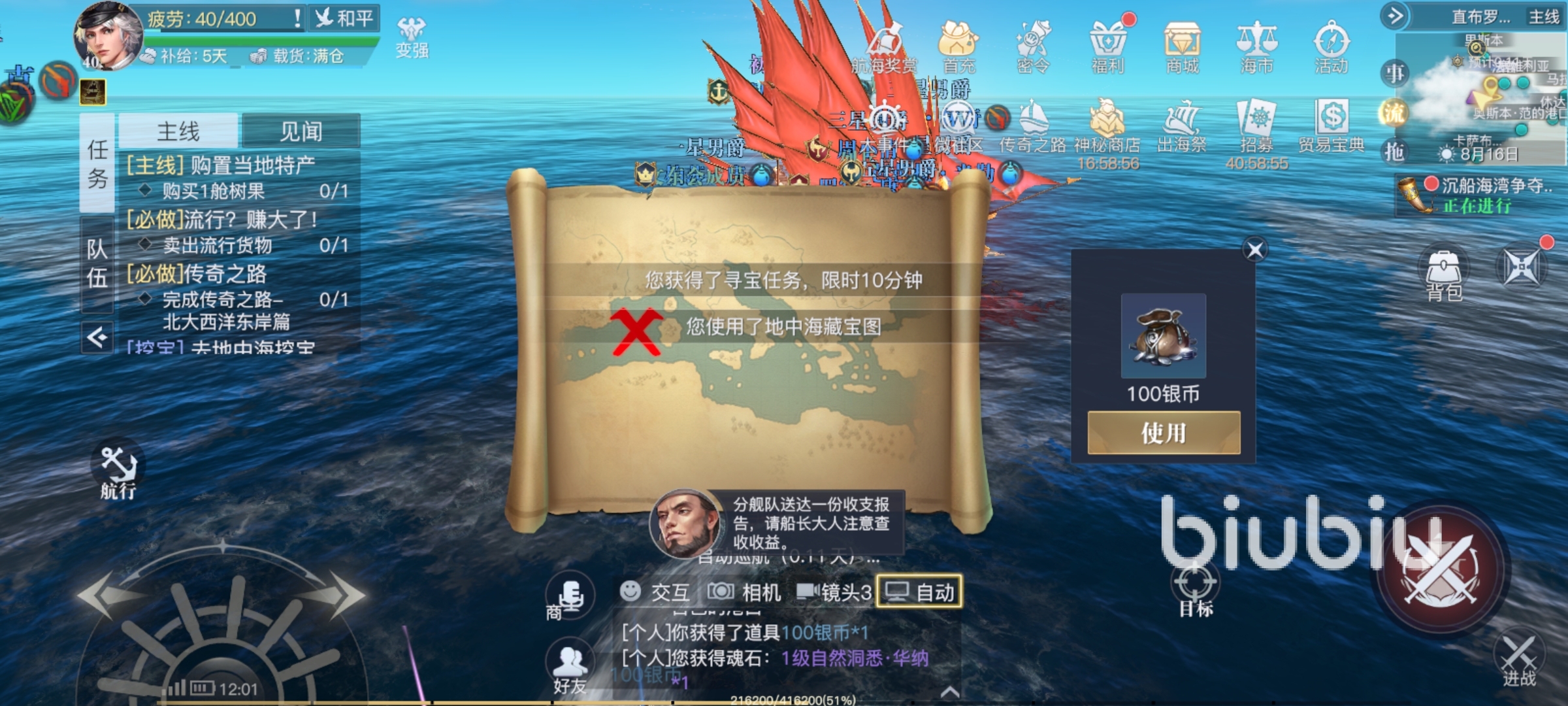 通過這些途徑獲取的藏寶圖,能夠在背包中查看到,點(diǎn)擊使用就能夠自動(dòng)尋路到寶藏所在的海域。如果背包中有足夠的藏寶圖,那么完成一張之后可以自動(dòng)去挖掘下一張,每一張藏寶圖的限時(shí)10分鐘,一般都能夠很快完成。如果僅僅是普通的地中海藏寶圖,那么大多數(shù)情況下都是只能獲得一些銀幣。真正的獎(jiǎng)勵(lì)還必須是紫色的高級(jí)寶圖。