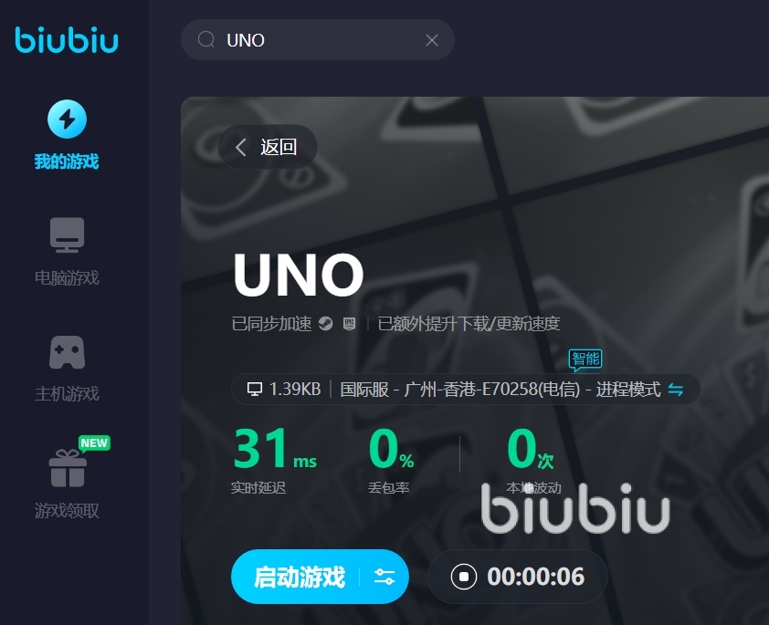 上述就是UNO掉線頻繁怎么辦的解決方法分享了,玩家在游戲過程中出現(xiàn)這個問題很有可能是因?yàn)檫@個游戲是個大量玩家同時在線的游戲,有些游戲模式下可能還會借助語音模式,那沒有好的網(wǎng)絡(luò)環(huán)境自然會掉線頻繁。那就在游戲過程中啟動biubiu的加速,biubiu上的多項(xiàng)免費(fèi)加速活動不要錯過。