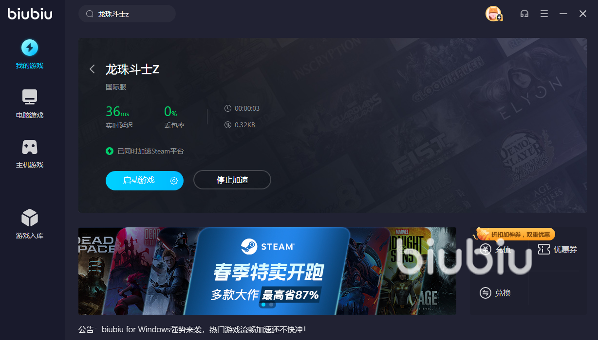 來(lái)源: 極光 作者: 羅斯 2023年03月29日 15:46龍珠斗士z作為一款龍珠動(dòng)漫的官方游戲,其出色的格斗系統(tǒng)以及畫(huà)面打擊感,環(huán)境破壞系統(tǒng),讓無(wú)數(shù)龍珠迷們對(duì)這款游戲趨之若鶩,想入坑的小伙伴可能會(huì)問(wèn):龍珠斗士z需要加速器嗎?答案是必然的,龍珠斗士z作為一款多人在線格斗游戲,如果各位小伙伴想要順暢的進(jìn)行游戲的話,加速器可是必不可少的哦!小編在魚(yú)龍混雜的加速器市場(chǎng)中努力尋找,體驗(yàn)后發(fā)現(xiàn),在使用biubiu加速器后,龍珠斗士z的卡頓問(wèn)題都得到了完美的解決。