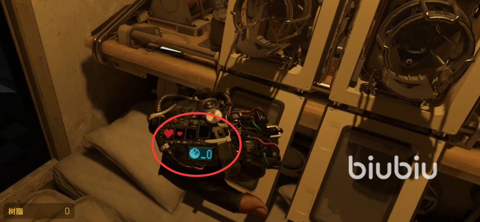 從羅素那里得到一個重力手套,會有不同的圖案代表不同的數(shù)值,其中藍色的數(shù)字就代表著已經(jīng)收集到的樹脂數(shù)量。如果拿起槍支,該數(shù)值就會變?yōu)槭S嗟膹椝幜浚浅:糜谩?/p>