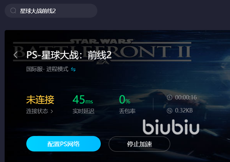 玩家在玩星球大戰(zhàn)這款游戲的時候,大部分場景都是在太空中進行戰(zhàn)斗,完成任務的。需要玩家角色在太空中駕駛戰(zhàn)艦或者是在太空中來回跳動,所以為了能夠自己的操作更加精準防止因為網(wǎng)絡而導致的失誤,大家可以使用BiuBiu加速器來提高網(wǎng)絡穩(wěn)定性。