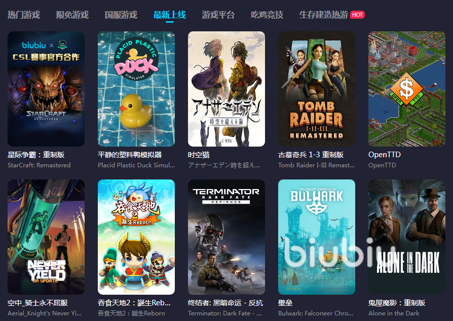 biubiu可以加速的游戲非常多,電腦游戲、主機游戲都在其中。很多小伙伴老游戲玩膩了,又不知道有什么新游可以玩,就來biubiu游戲庫上看一看。它把不同的游戲都分類好了,點擊對應的專區(qū)就能看到,想要找新游只要選擇“最新上線”區(qū)域就能看到全球剛上新的好玩的游戲了。