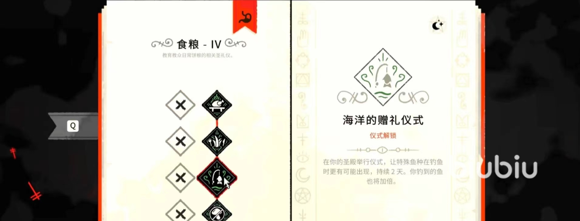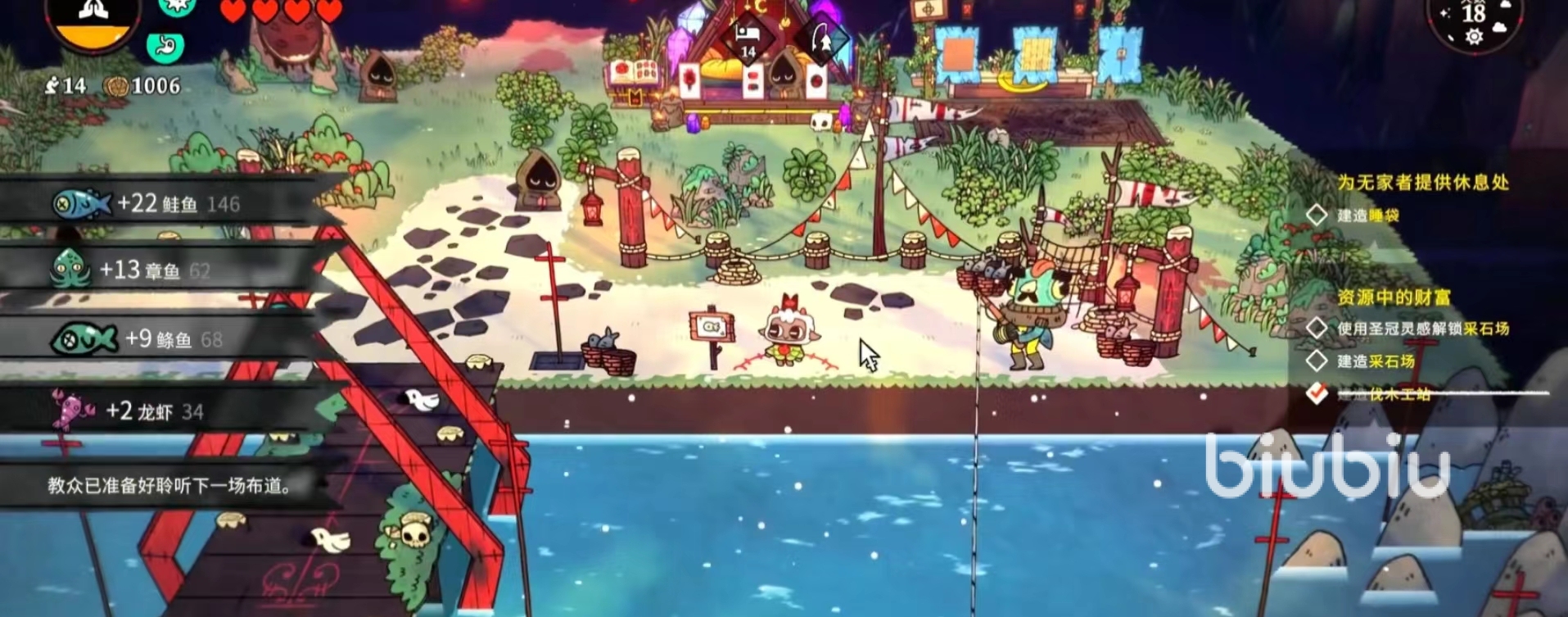 這是玩家可以通過釣魚得到材料,把金衣做出來,有金衣前期打架就沒有那么難了。在玩家解鎖信徒忠誠度之后,可通過贈送禮物的方式提升信徒對自己的忠誠度,忠誠度可用于后面獲取教條,而教條可以給予玩家一些戰(zhàn)斗BUFF的效果。