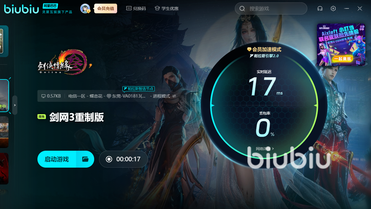 來源: 極光 作者: Roran 2024年11月30日 00:00每次玩劍網(wǎng)三卡頓怎么辦?劍網(wǎng)三作為流傳已久的經(jīng)典武俠巨作,動(dòng)作技能方面操作起來十分絲滑。所以一卡頓,玩家體驗(yàn)起來就很崩潰,無法流暢銜接技能。這時(shí)可使用biubiu,輕松暢享極速網(wǎng)絡(luò)。讓你每次都可準(zhǔn)確命中敵人,將所有連招都一次實(shí)現(xiàn),而不是卡得路都走不了。
