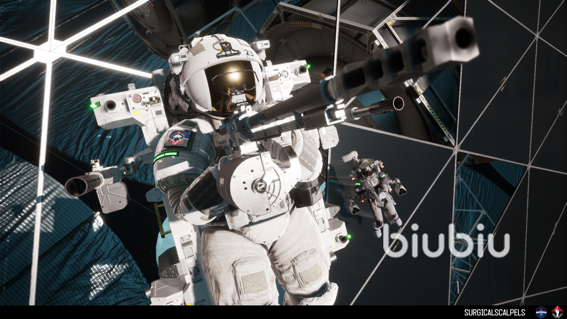 在邊境游戲中,多名玩家都將身處太空,沒有了地心引力角色都處于放空狀態(tài),就可實現(xiàn)自由飛行,在太空遨游,這太空就是玩家的戰(zhàn)場,環(huán)境的四面八方都有敵人,需要使用太空服配備的機動裝置,以及掛載武器去戰(zhàn)斗,當(dāng)周圍有敵人接近時,系統(tǒng)會有很顯眼的提示,所以玩家需要時刻注意這一點。在太空中行動是比較麻煩的,不像地球上有方向和坐標(biāo),玩家只能通過雷達(dá)上自己位置和其他玩家的標(biāo)點作為參考,戰(zhàn)斗中如果收到傷害,導(dǎo)致宇航服被擊破,只要自己未受到致命傷害,就可以自行修補回復(fù)血量,因為不修補的話,玩家最終會因為缺氧而死亡,這是新手玩家經(jīng)常中招的地方。
