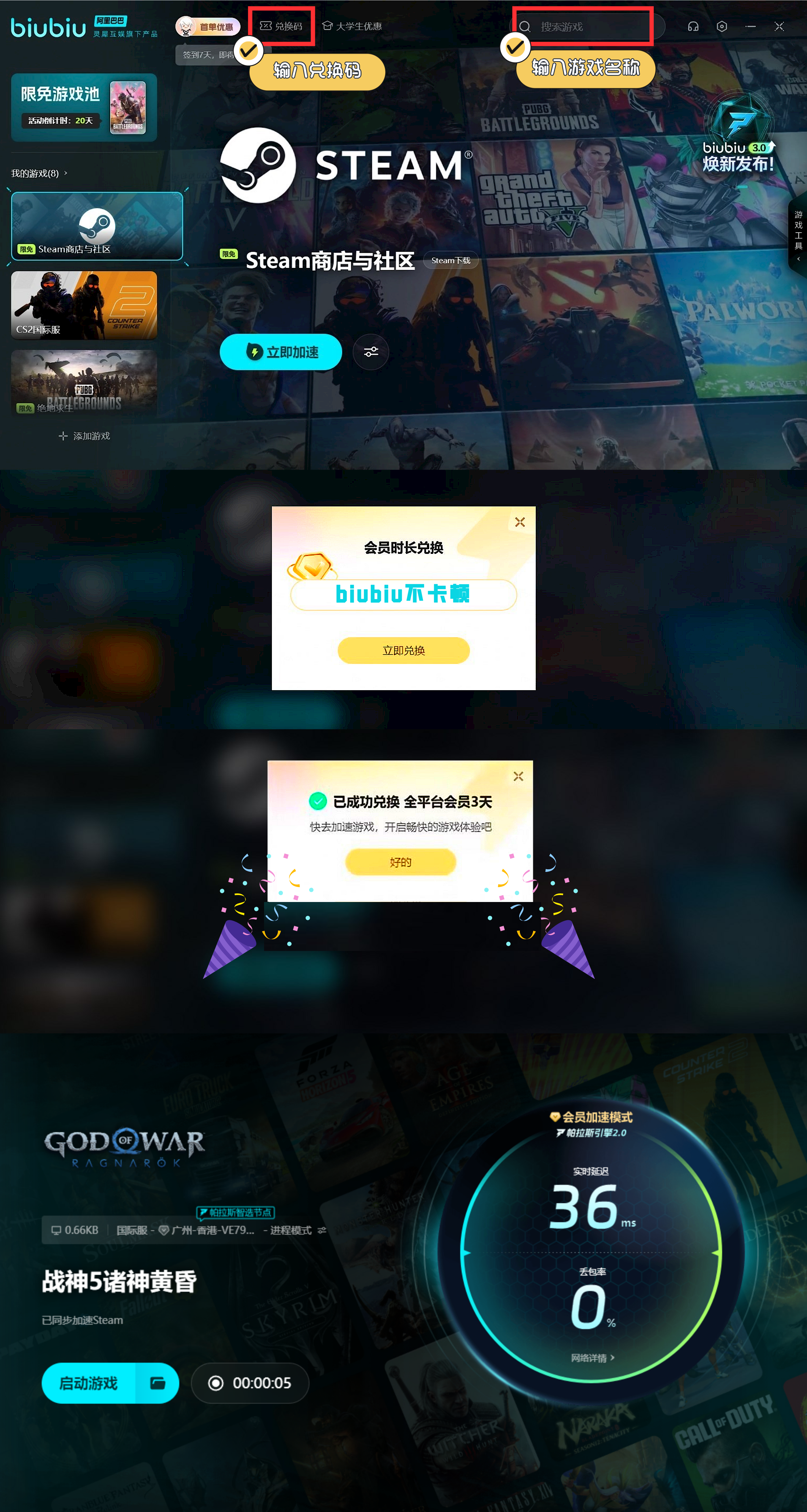 現(xiàn)在新用戶得到的福利也很多,大家可以注冊新賬號,登錄就能拿到免費(fèi)的24小時(shí)加速時(shí)間用,另外兌換碼【biubiu不卡頓】也給新老用戶使用的,兌換得到額外的72小時(shí)加速時(shí)長,等于加一起新人可以用96小時(shí)哦。