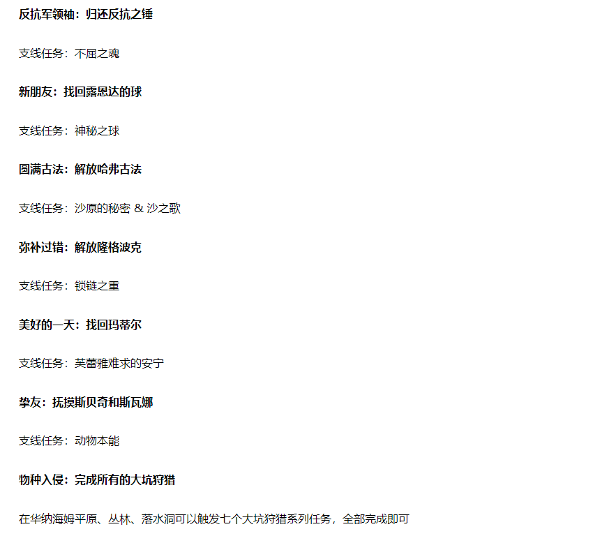 當(dāng)我們完成主線的時(shí)候,再去完成一些支線任務(wù),同樣有成就可以拿,小編也一一列給大家了。比如完成神秘之球任務(wù)的時(shí)候,可以得到【新朋友:找回露恩達(dá)的球】這個(gè)成就的。