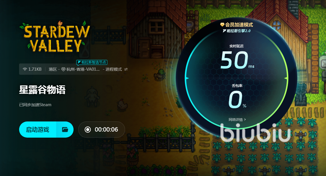 Biubiu還有一項大家必須要掌握的福利,那就是使用兌換碼【biubiu不卡頓】,來獲得72小時加速時間。在這段時間里,biubiu全平臺的游戲都可以自由去加速操作,只需要輸入游戲名稱,就能找到對應的選項。例如星露谷物語輸入進去后,找到選項,點擊一鍵加速,在加速頁面中直接去打開客戶端就可以了,接下來正常運行游戲,biubiu會自動在后臺工作,它利用自身多項核心技術,保證網絡穩(wěn)定性。一旦出現波動情況,就利用多節(jié)點切換技術,選擇更合適進行連接,這樣能夠保持穩(wěn)定,如果出現當前網絡過弱問題,就利用自身多路發(fā)包技術,有效降低丟包率,這些技術綜合起來,是非常值得用戶信賴。