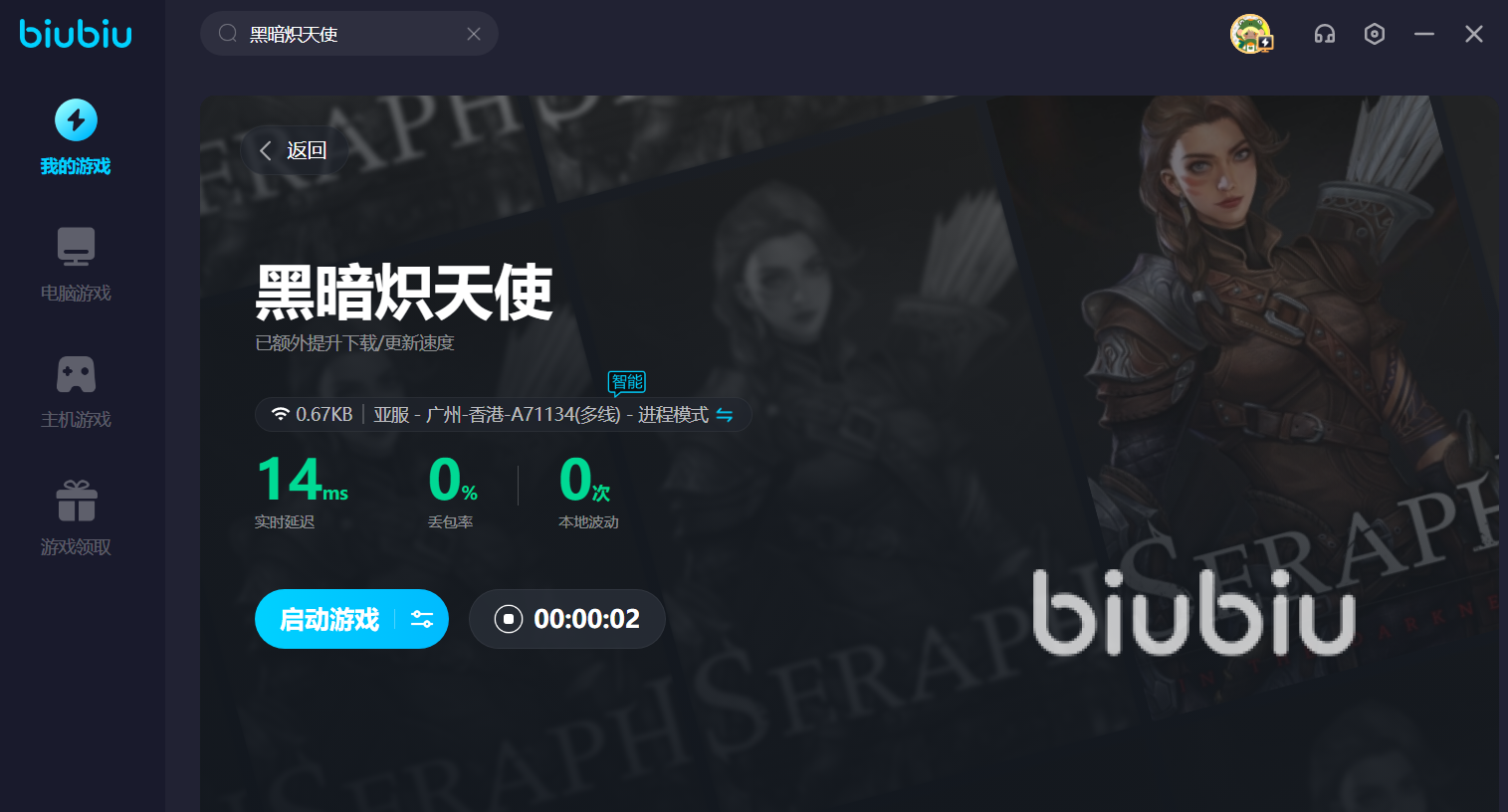 biubiu加速器有簡潔明了的用戶界面設(shè)計(jì),使用的方法也很好上手,主頁就有按照各大游戲類型分類,方便大家查找。各位用戶登錄后,在首頁最頂?shù)乃阉鳈阪I入“黑暗熾天使”即可找到游戲,點(diǎn)擊選好區(qū)服啟動(dòng)能一鍵加速。