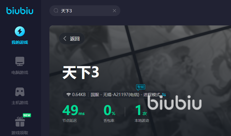后續(xù)類似這樣的驚險劇情還有很多,玩家如果有興趣,就要自己去體驗。這么長的故事想體驗完,是要花費很久的游戲時長的,起碼要五六十個小時。而玩家不可能一次在線這么久,那就要分成多天去完成。首次加速一款游戲需要搜索,后面再登錄,在biubiu的首頁,之前加速過的游戲,都會被記錄下來,這樣就可以實現(xiàn)快速使用的目的了。