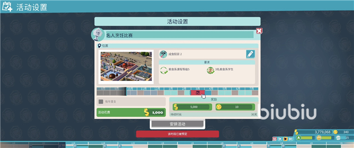 當(dāng)然,如果大家覺得自己的贊譽(yù)值還是不夠的話,也可以到美食節(jié)目這里來創(chuàng)建一個(gè)活動(dòng),這里有很多的比賽,玩家可以花費(fèi)金幣安排活動(dòng),屆時(shí)也能獲得一定的贊譽(yù)值。