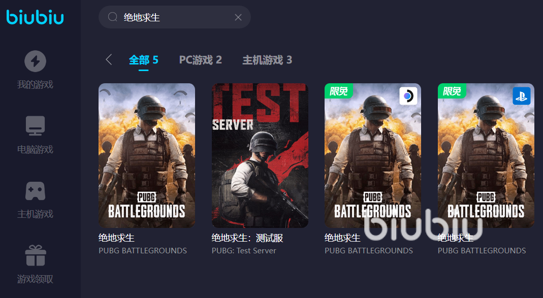 作為大眾在使用的游戲加速器,在使用biubiu對(duì)絕地求生這個(gè)游戲進(jìn)行加速的時(shí)候,也是非常方便容易的。大家只需打開biubiu加速器,并且搜索絕地求生,就可以找到不同版本的絕地求生這個(gè)游戲,大家只需找到自己所運(yùn)行的版本或者是Switch端的連載加速等等都可以使用。