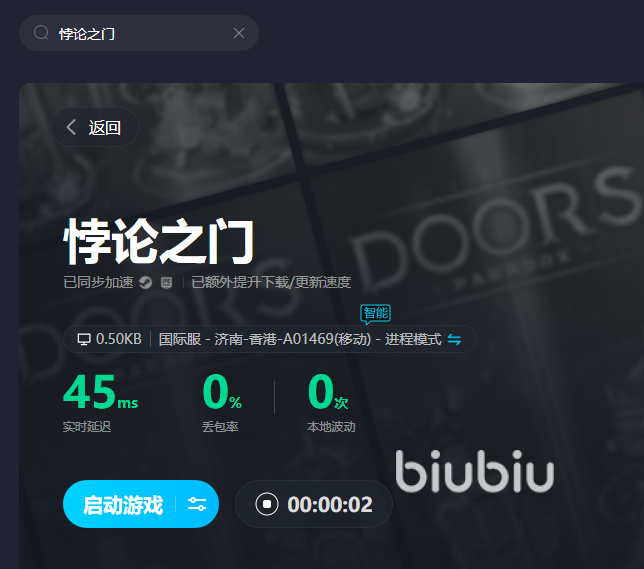 雖然說悖論之門算不上是什么大型游戲,可喜歡它的玩家數量是特別多的,在biubiu的游戲庫里甚至能給人一種大型游戲庫的感覺,每一次更新還都會盡可能去滿足玩家反饋的提出加速要求,像是悖論之門這款游戲的加速特別簡單,就像是在網頁搜素一款游戲如此簡單,輸入名字——搜索——加速,就能讓游戲網絡迅速改善,要是你玩的游戲還有主機客戶端的話一并也能看到。
