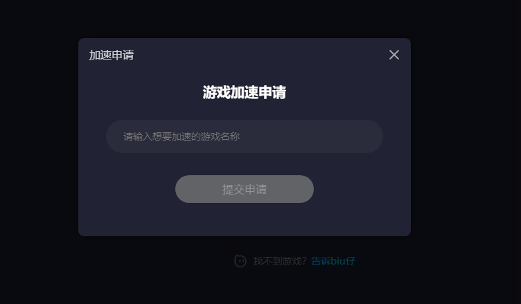 不能說這種游戲就能受到所有人的喜歡,再加上市場上的游戲數量非常之多,很難說一次性將全網的游戲都給收錄進來,不過biubiu也是一直堅持在收集反饋用戶意見,并能夠讓玩家自主來提出想要什么游戲的加速,這個機制觸發(fā)的條件也很溫馨,系統(tǒng)會自動判定你剛才輸入的關鍵詞是否得到了有效反饋,若是沒有搜索到對應游戲,就會問你是否需要進行游戲加速申請。