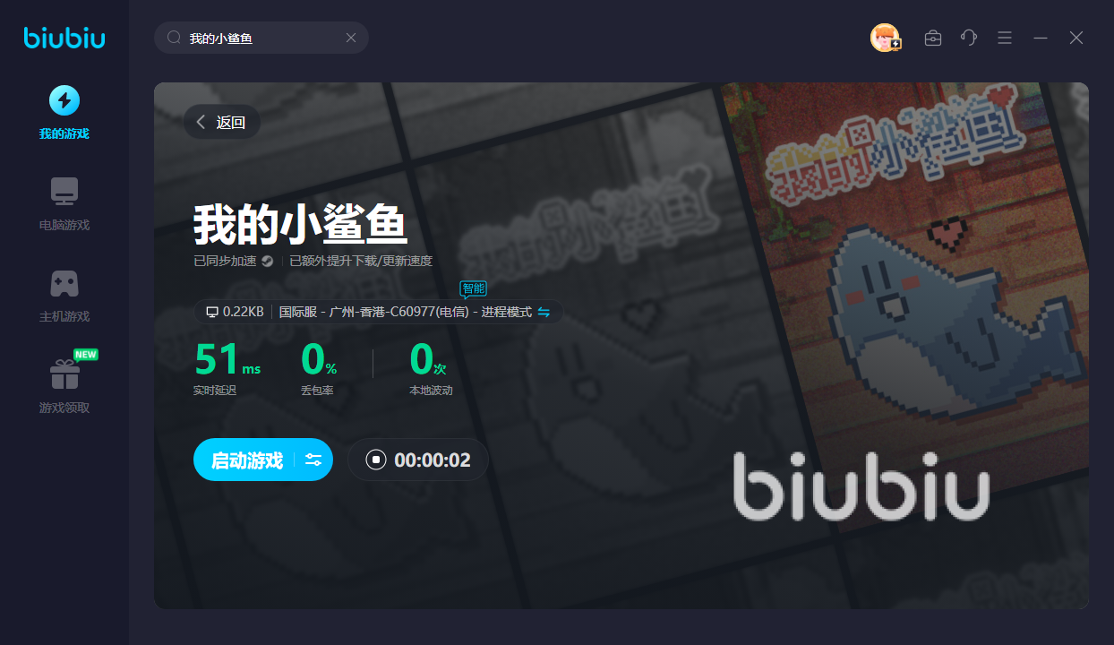 以上就是我的小鯊魚閃退該怎么解決的方法,而且這款游戲只是千萬款游戲中的一個例子,只要是可搜到的游戲,都能用一樣的方法到biubiu加速器里進行深度加速,加速數(shù)據(jù)有保障、透明可看到,何況現(xiàn)在biubiu放出的優(yōu)惠力度還那么大,就算是學(xué)生也能負擔(dān)的起。