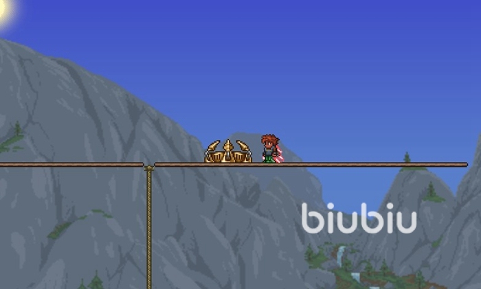 想要使用激活埃特尼亞水晶,我們必須要準(zhǔn)備一處開闊平坦的地形。建議是大家使用繩子先往上搭,然后確定全屏視野內(nèi)沒有任何其他物品(包括樹木等)之后使用物塊搭建一個長條的平臺。這里需要注意的是,使用平臺是不可以的,我們可以使用木材、石材甚至是土塊,并且長度一定要非常長。