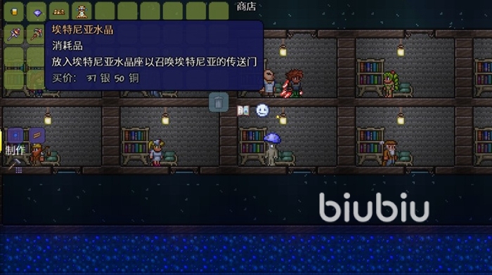 在我們擊敗世界吞噬怪或者是克蘇魯之腦之后就可以在探索時發(fā)現(xiàn)一個昏迷的男子,與其互動就可以邀請他入住家中,他就是酒館老板。在酒館老板這里我們可以購買到埃特尼亞水晶以及埃特尼亞水晶座,這兩個就是召喚撒旦軍隊(duì)的道具。
