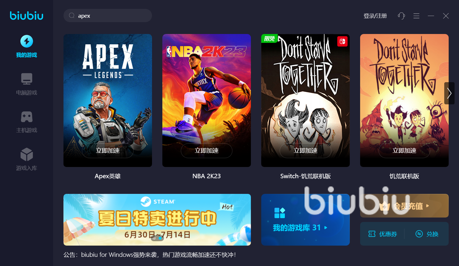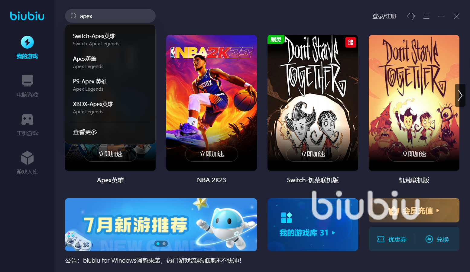 Apex從2019年正式發(fā)行,走過了輝煌的幾年,累積了超高的人氣。作為策略射擊游戲,它實(shí)時(shí)對抗性強(qiáng),戰(zhàn)斗節(jié)奏很快。游戲總共有十幾位角色,三位玩家組隊(duì)參與挑戰(zhàn),不同小組之間激烈對抗。每個(gè)賽季游戲機(jī)制更新,新角色、武器、皮膚等推陳出新,帶來新穎玩法和內(nèi)容。暢玩這款游戲,大家提前安裝好biubiu軟件。