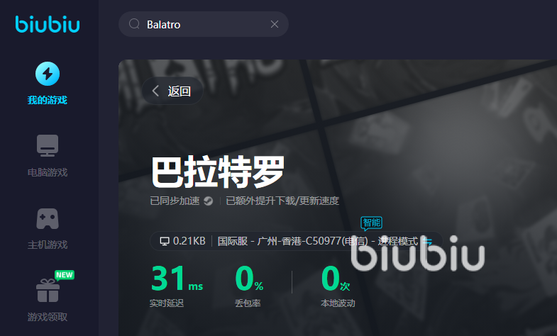 在學(xué)會(huì)這個(gè)技巧之后,大家結(jié)合自己的思考,就可以開啟高端局之旅了,現(xiàn)在也知道了要用biubiu加速器,那就可以放心的玩Balatro了,不用擔(dān)心卡頓或者登錄服務(wù)器的時(shí)候沒反應(yīng)進(jìn)不去了。