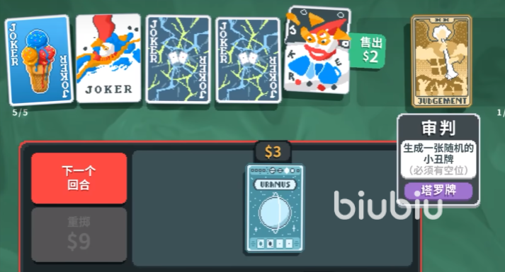 想玩好小丑牌,有一個(gè)要點(diǎn)一定要注意,那就是不能貪心,尤其是經(jīng)濟(jì)牌以及發(fā)育牌,在不能保證勝利的時(shí)候,一定要留一次換牌次數(shù),這樣才有保底分?jǐn)?shù)。