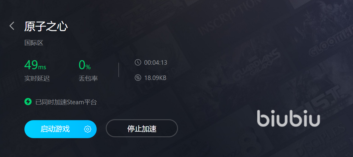 小編為大家細(xì)致的講解了原子之心,這款游戲應(yīng)對(duì)閃退的處理辦法,運(yùn)用biubiu加速器這個(gè)軟件,可以輕松的幫助大家解決這一類(lèi)的問(wèn)題,像閃退,卡頓,掉幀等等。大家對(duì)游戲提速有需要的話,歡迎大家下載biubiu加速器。