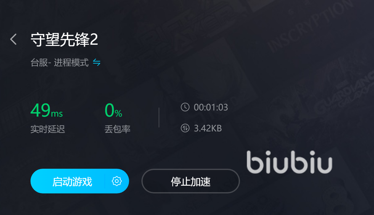 到目前為止,小編用biubiu的時(shí)間也挺長(zhǎng)的,沒(méi)有出現(xiàn)過(guò)什么狀況,操作也很簡(jiǎn)單,直接在軟件里找到守望先鋒添加,玩的時(shí)候直接在biubiu啟動(dòng)就好。而且在biubiu給守望先鋒游戲加速的時(shí)候,玩家也能隨時(shí)監(jiān)控,能夠看到延遲率和丟包率都有顯示的。