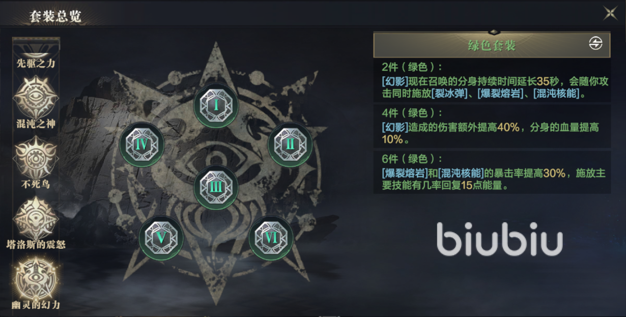 1、這一套“幽靈的幻力”符文套裝需要玩家到達(dá)145級(jí)時(shí)才能開啟,這一套符文套裝可以對(duì)其戰(zhàn)術(shù)技能“幻影”進(jìn)行強(qiáng)化。強(qiáng)化后的幻影在釋放技能后可以召喚出一個(gè)幻影出來,幻影可以繼承自己一定的生命值,而且這個(gè)幻影還能釋放自己說攜帶的其他技能(不可以繼續(xù)使用幻影)。