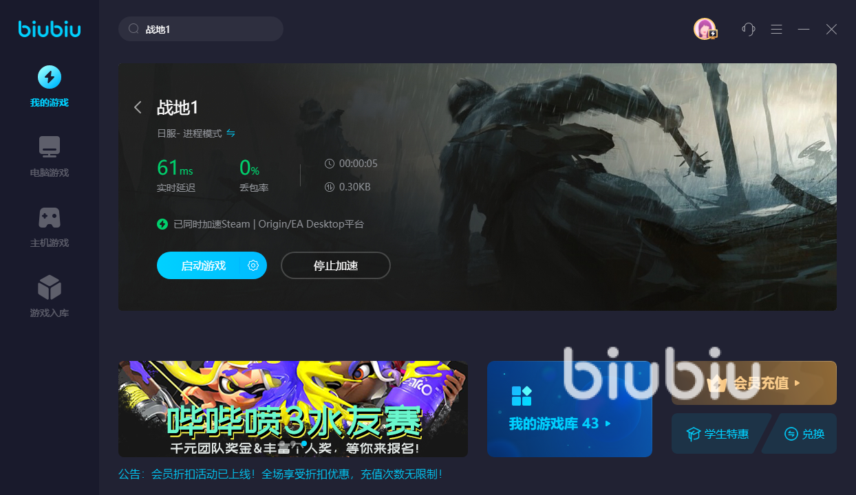 加速戰(zhàn)地一什么加速器好給大家推薦的就是biubiu加速器了,無論是射擊類游戲,還是冒險(xiǎn)游戲和動(dòng)作游戲,在biubiu加速器這里都可以找到并且進(jìn)行加速,操作步驟簡單,效果也能讓大家滿意,還等什么呢?