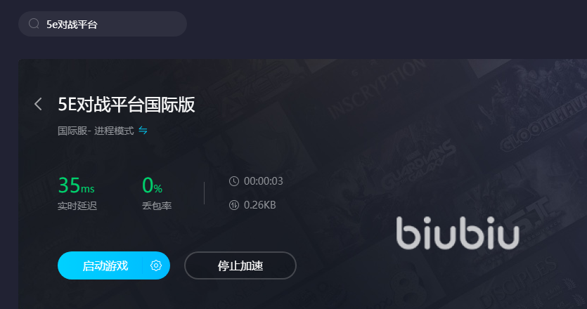 biubiu加速器這一款軟件使用起來十分簡單,在軟件的搜索欄中鍵入自己需要加速的游戲名稱(如5e對戰(zhàn)平臺),就可以一鍵搜索到加速欄目,點擊一下就可以進行加速了。并且biubiu加速器軟件的界面十分簡潔,配色也很干凈,很符合大眾審美,是一款顏值非常高的軟件。