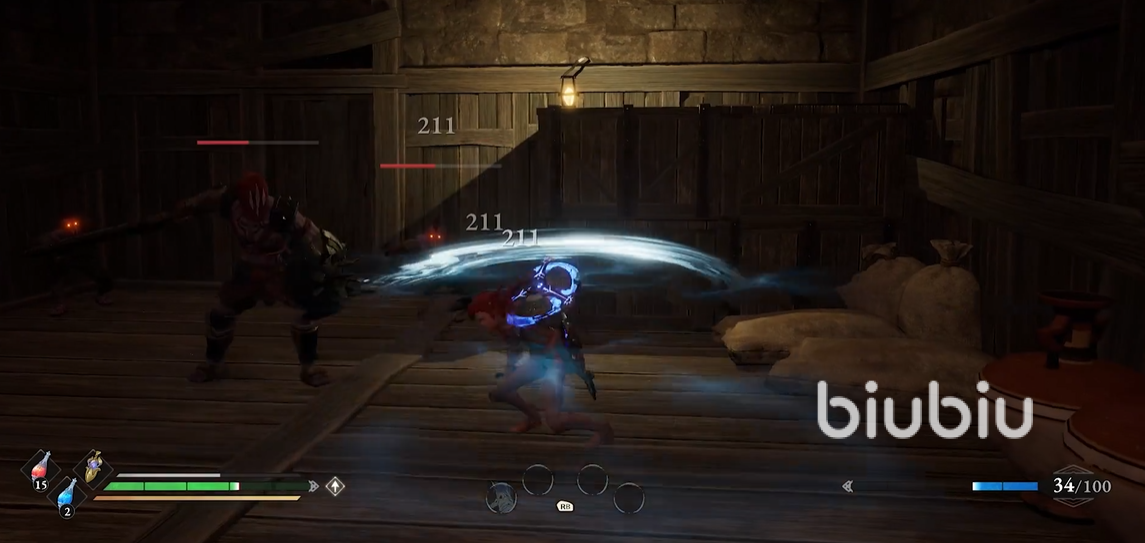 昆圖斯在房間當(dāng)中正在被三個(gè)戰(zhàn)斧幫寨的士兵圍攻,為了避免NPC被敵人給消滅,玩家們在這里盡量快速移動到敵人身邊引起注意,然后與對手們展開戰(zhàn)斗。過程當(dāng)中需要留意的是最強(qiáng)壯的敵人,這名敵人的近戰(zhàn)能力不錯(cuò),攻擊的時(shí)候可以對玩家造成較高的傷害,建議大家在戰(zhàn)斗的過程當(dāng)中優(yōu)先擊潰他。