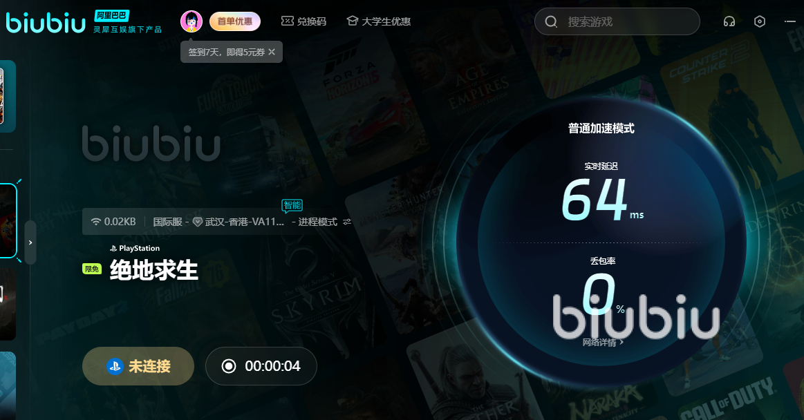我們可以用biubiu加速器來獲取幫助,它現(xiàn)在有超優(yōu)惠的活動(dòng)在開展,小伙伴們用下就知道效果了。現(xiàn)在新用戶登錄的時(shí)候,就可以獲得免費(fèi)的24小時(shí)加速時(shí)間,新老用戶還有兌換活動(dòng)能參加,得到額外的72小時(shí)加速時(shí)長(zhǎng),用兌換碼【biubiu不卡頓】就行了,總共給新人用的免費(fèi)時(shí)長(zhǎng)就是96小時(shí)了。