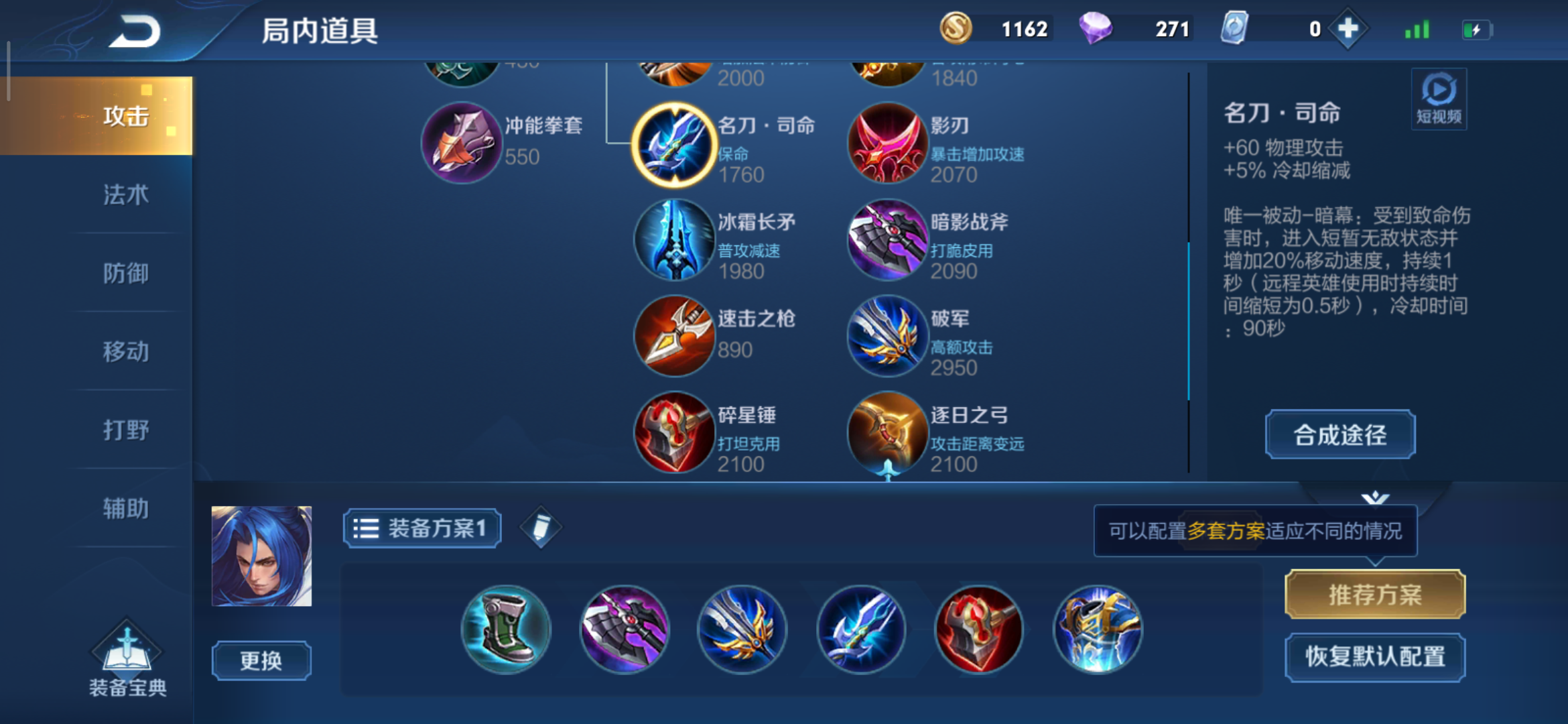 任性鞋,暗影戰(zhàn)斧,破軍,名刀,碎星錘,復(fù)活甲。