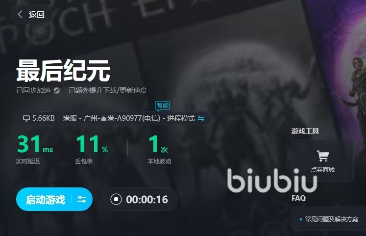 直接下載,大家就能在平臺(tái)里搜到最后紀(jì)元游戲,這里大家可以根據(jù)自己玩游戲的區(qū)服選擇適合的,然后點(diǎn)擊啟動(dòng)游戲就可以用biubiu給它加速了,整個(gè)過程一氣呵成,很快就能啟動(dòng)體驗(yàn)。雖然是多下載了一個(gè)軟件,但是大家的操作并沒有變得復(fù)雜,不需要同時(shí)打開兩個(gè)軟件,在加速器里就能啟動(dòng)游戲,過程簡單,通俗易懂,很好就能掌握。