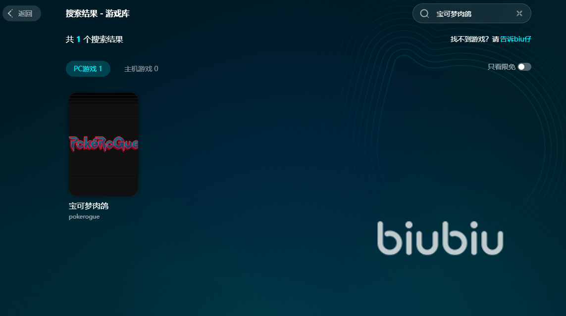 biubiu加速效果在很多加速軟件里都是數(shù)一數(shù)二的,畢竟留下了很多的老用戶,在這里小伙伴們可以搜到很多游戲,像寶可夢系列在這里基本上都可以進行加速,如果后續(xù)小伙伴們想體驗其他的系列,也都是可以用這個平臺去輔助體驗的。