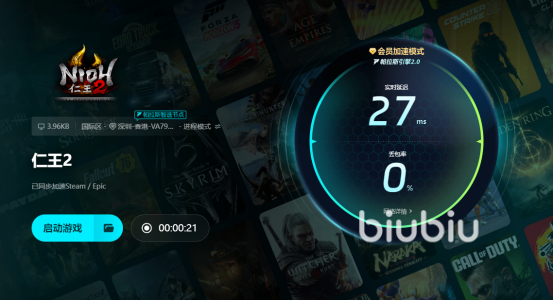 仁王間歇性卡頓是比較常見的現(xiàn)象,大部分都與網(wǎng)絡(luò)波動(dòng)有關(guān),解決這樣的問題較為簡單,點(diǎn)擊上方鏈接下載biubiu加速器,在平臺(tái)中搜索游戲名稱點(diǎn)擊立即加速即可,趕快下載安裝領(lǐng)取福利吧。