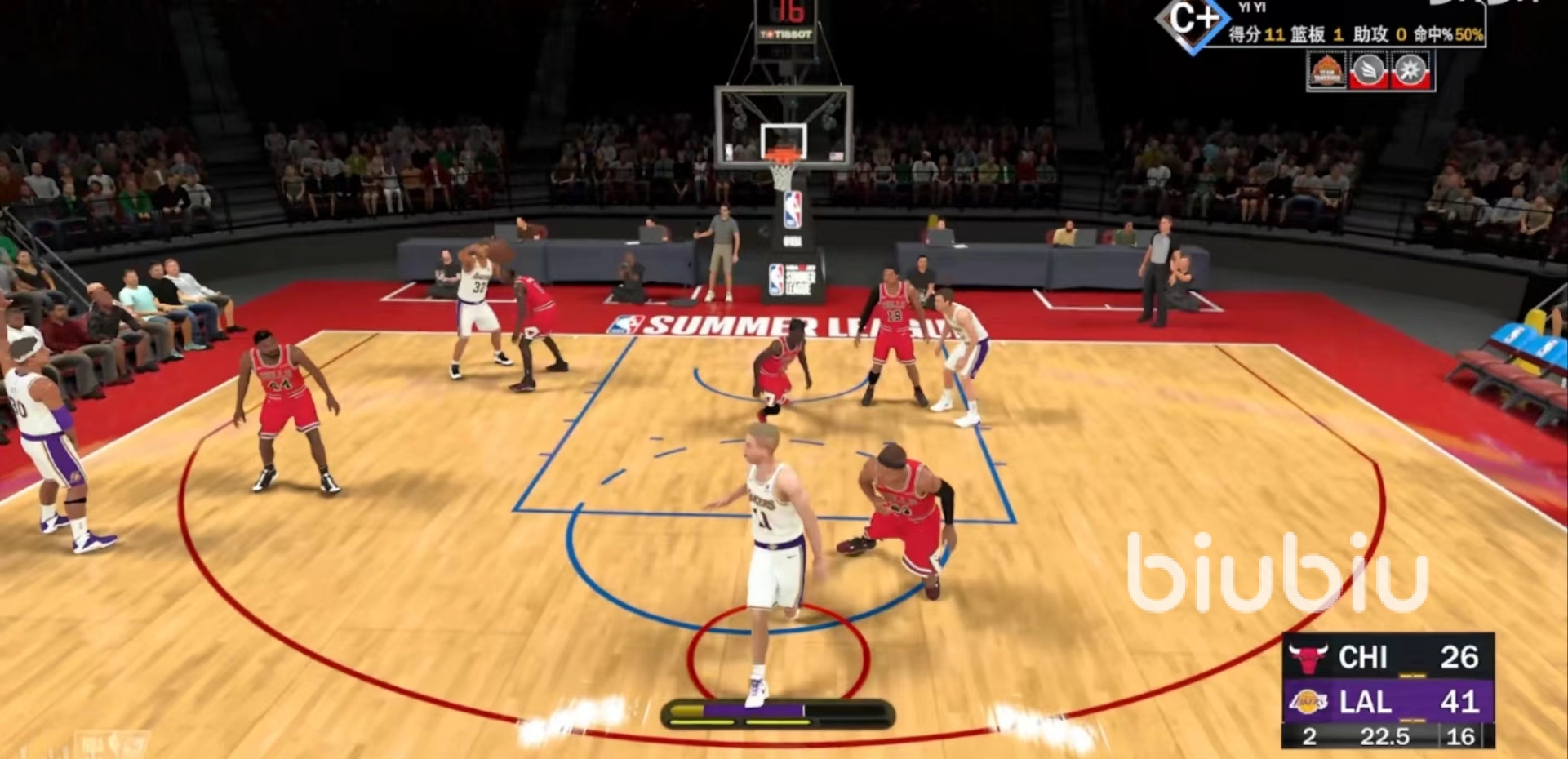 右邊的搖桿+反手斜下鍵,背后運球可以利用身體擋住對手的視線。背后運球變向可利用這個特點,打?qū)κ忠粋€節(jié)奏差。另外進行背后運球,球會遠離防守隊員,可以更好的保護球,不過對于球員的控球能力要求比較高,否則容易失誤。