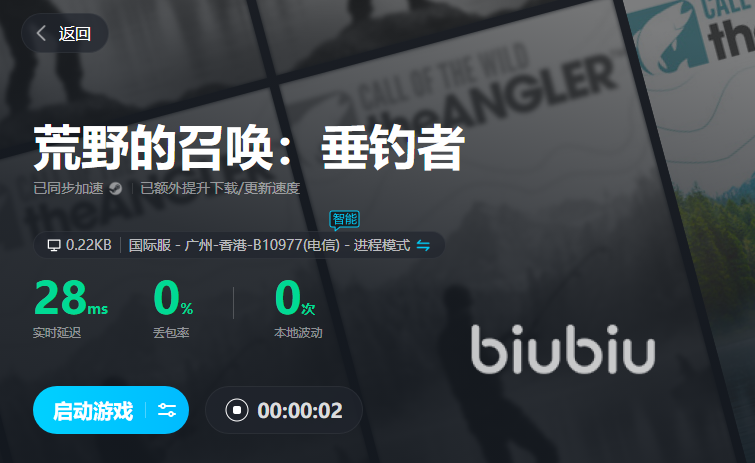 來源: 極光 作者: 果果 2024年02月28日 14:42如果大家平時(shí)喜歡去體驗(yàn)?zāi)M釣魚玩法的游戲,那么它肯定是不能錯(cuò)過的,同時(shí)還為大家融入了大量的經(jīng)營(yíng)元素在其中,下面小編就要和大家說下有能加速荒野的召喚加速器嗎,畢竟在游戲的過程中,玩家要是遇到了掉幀,或者是直接卡死的情況還是很難受的,所以這時(shí)候biubiu就派上用場(chǎng)了,作為為數(shù)不多的專線加速工具,它的效果還是很突出的。