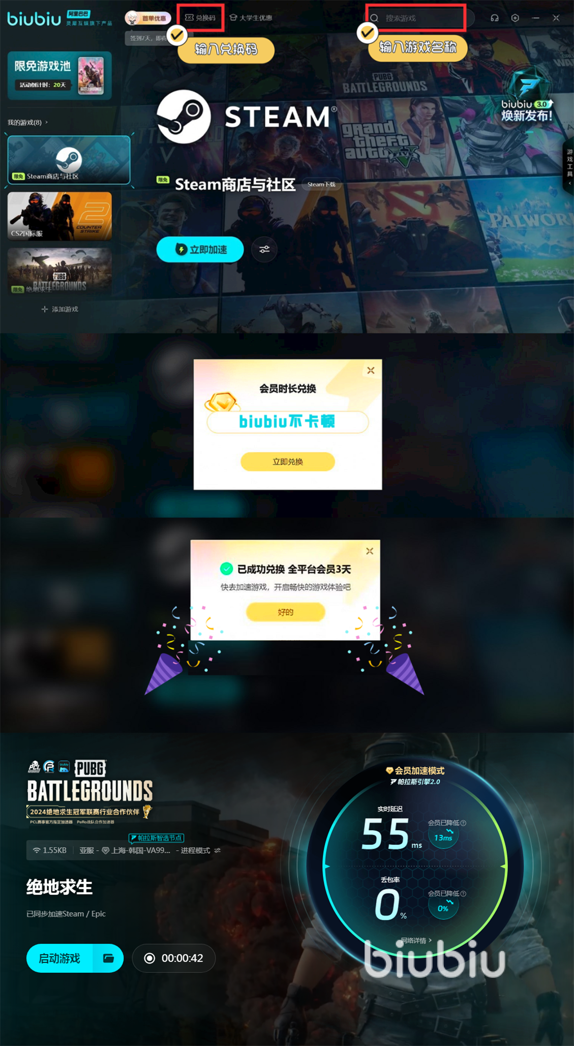 僵尸模式是很多玩家期待已久的玩法,因?yàn)樵趹?zhàn)斗中將會(huì)出現(xiàn)數(shù)量眾多的僵尸,所以保持穩(wěn)定的網(wǎng)絡(luò)非常重要。Biubiu加速器就非常適合大家選擇,biubiu可以在網(wǎng)絡(luò)占用情況較高的時(shí)候,為大家保證低延遲,這樣能流暢進(jìn)行各種操作。現(xiàn)在福利也非常優(yōu)厚,對于新注冊的賬號將直接贈(zèng)送24小時(shí)加速時(shí)間,這就是為了讓大家能夠先注冊賬號,感受優(yōu)質(zhì)效果。還有一項(xiàng)兌換碼福利,是針對每個(gè)biubiu賬號提供的,大家只需要將【biubiu不卡頓】輸入兌換框中,然后就能免費(fèi)兌換到三天加速時(shí)間。只有在低延遲下才能夠輕松躲避僵尸,幫助大家獲勝。
